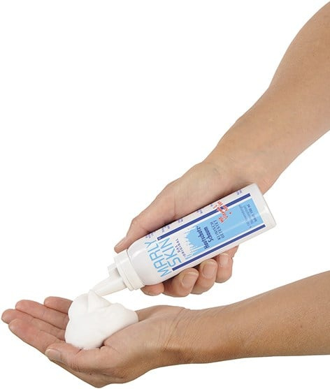 - Voor het gezicht verdeel je een bolletje foam ter grootte van een walnoot aan op een ontvette en droge huid. Een paar minuutjes laten inwerken.